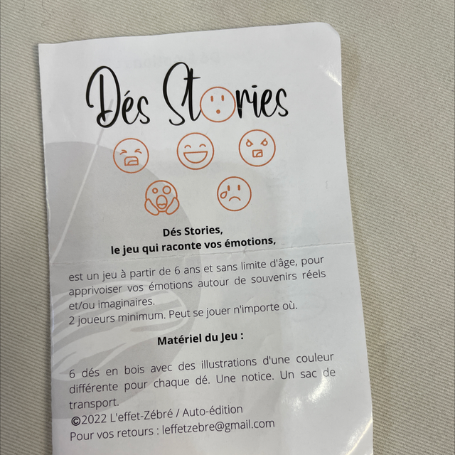 Le jeu qui raconte vos émotions, est un jeu à partir de 6 ans et sans limite d'âge, pour apprivoiser vos émotions autour de souvenirs réels et/ou imaginaires.